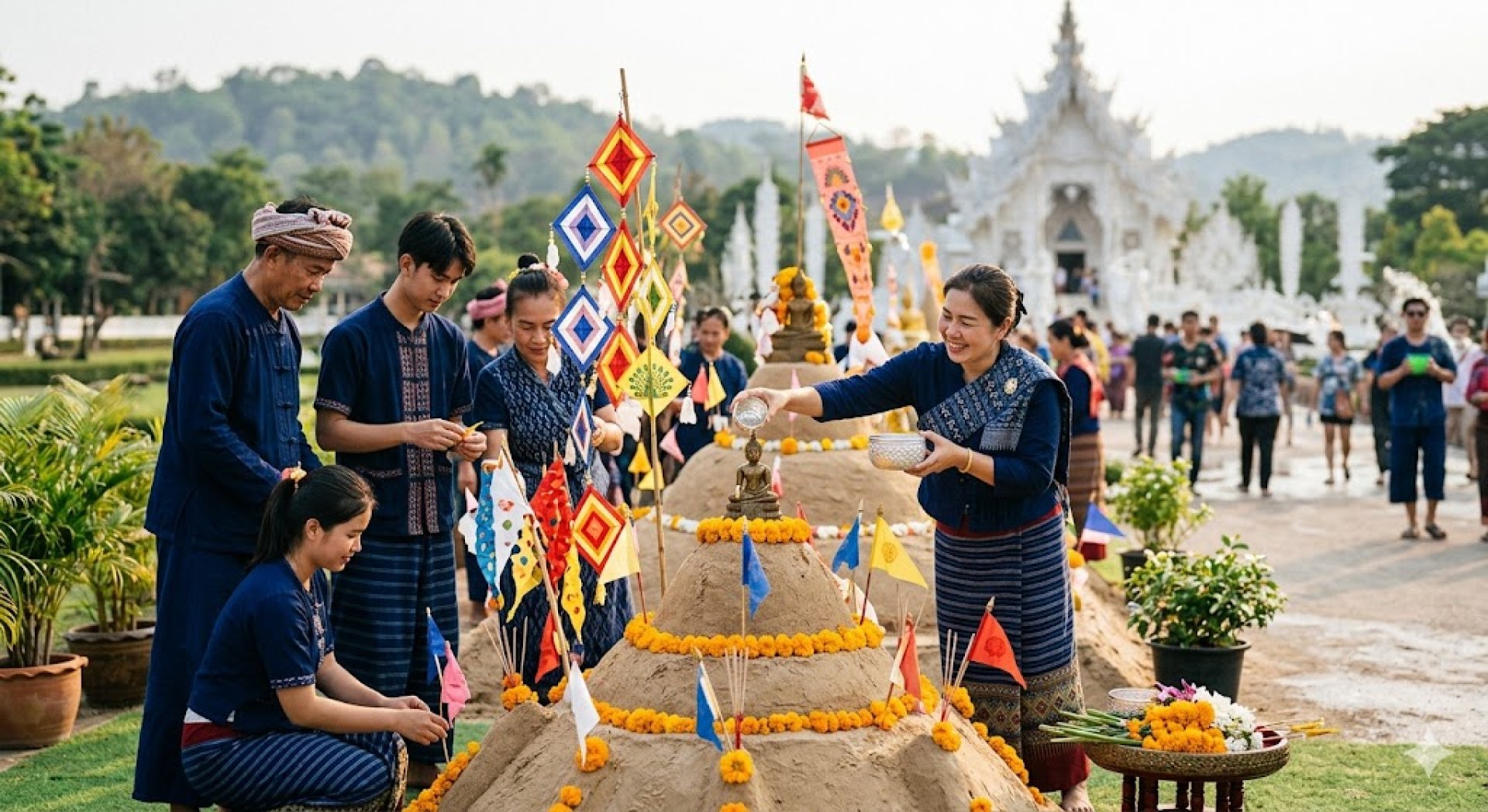 Sand Pagodas: You may see beautiful sand stupas decorated with flags at temples. This tradition stems from the idea of "returning" the sand that worshippers carry away on their shoes throughout the year.